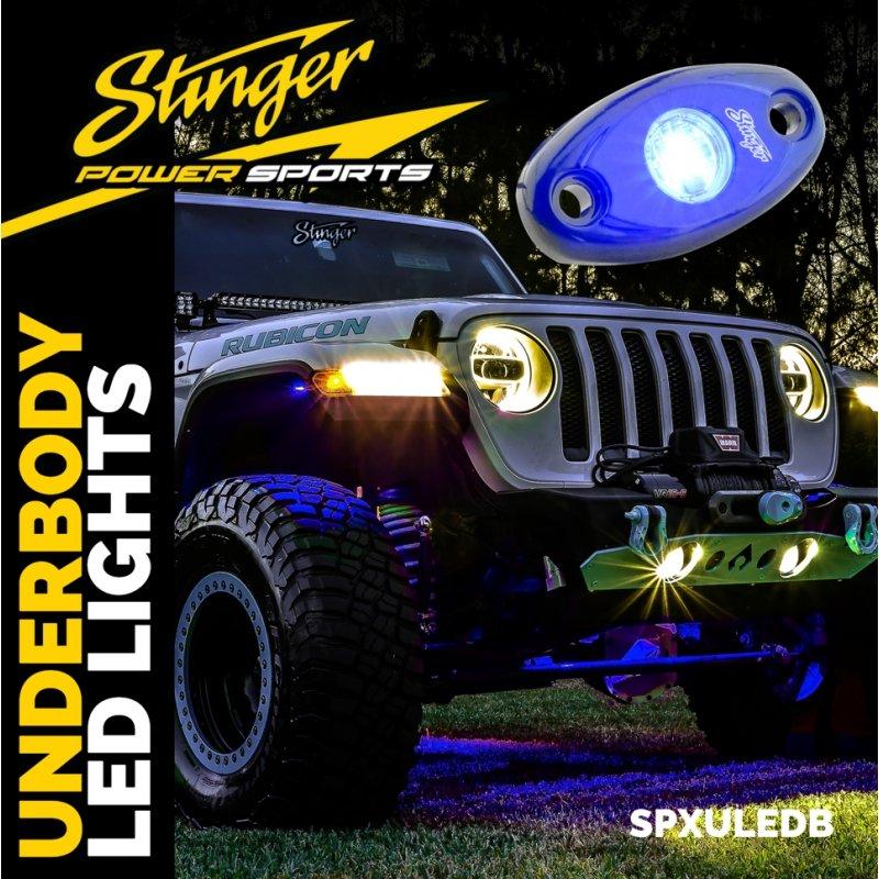 Add some fun to your ATV, Car, Truck or Jeep, SPXULED kits from Stinger, light up the night in whatever the conditions. Bright blue CREE LED pods can be used anywhere you need powerful light to cut through the darkness to provide safety and flair. Water and dust proof aluminum housing make them perfect for off-road use. With limitless possibilities from function to style, Universal LED Pods are great for powersports, and on-road vehicles of all types.